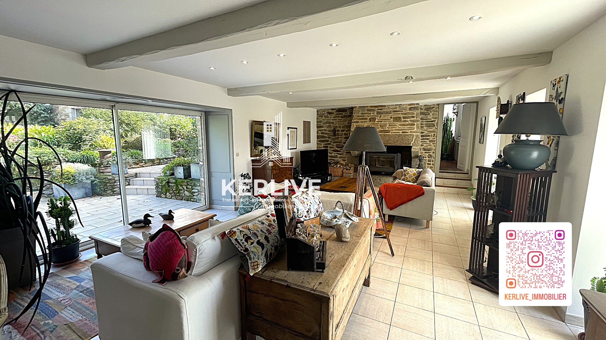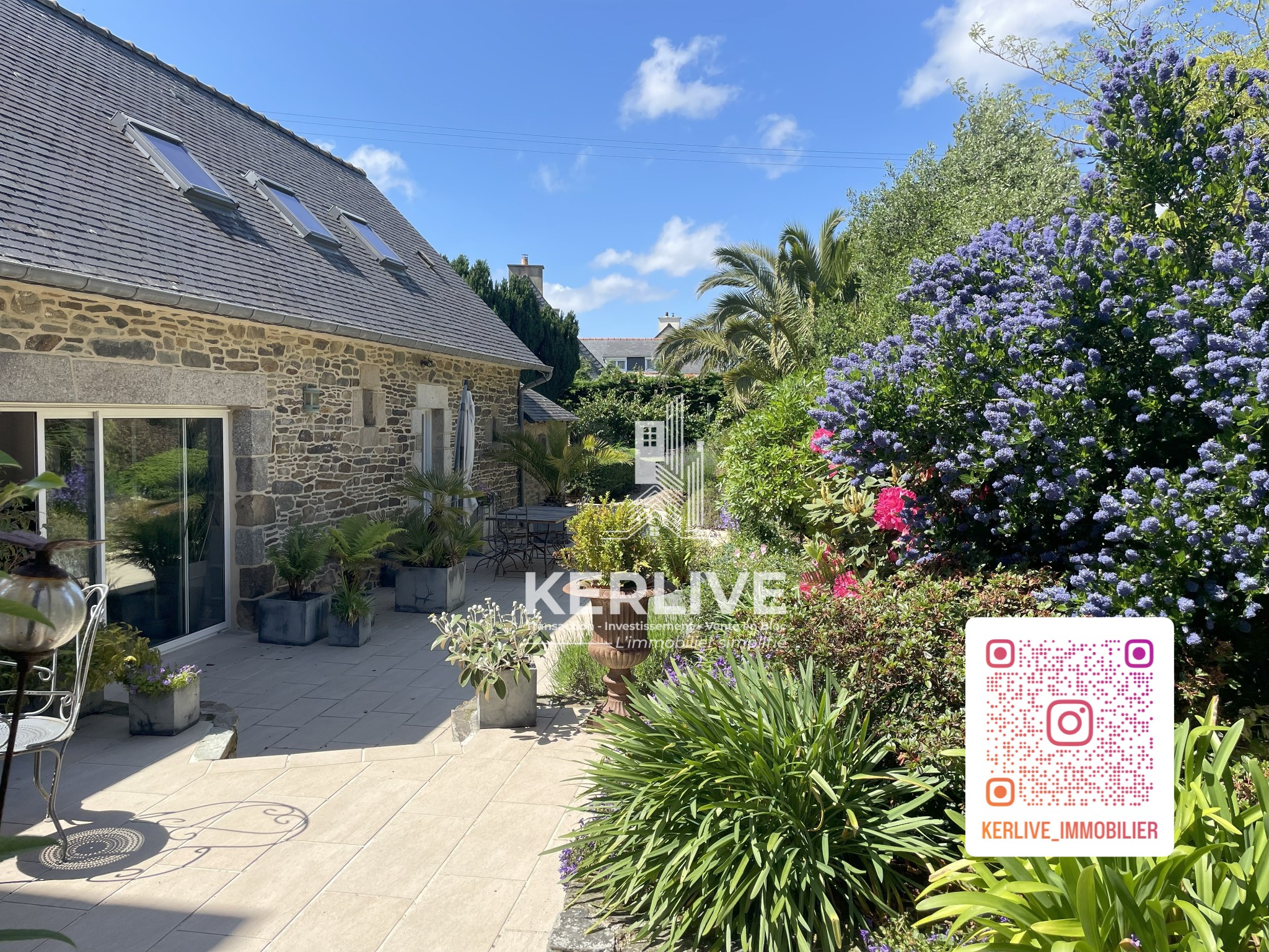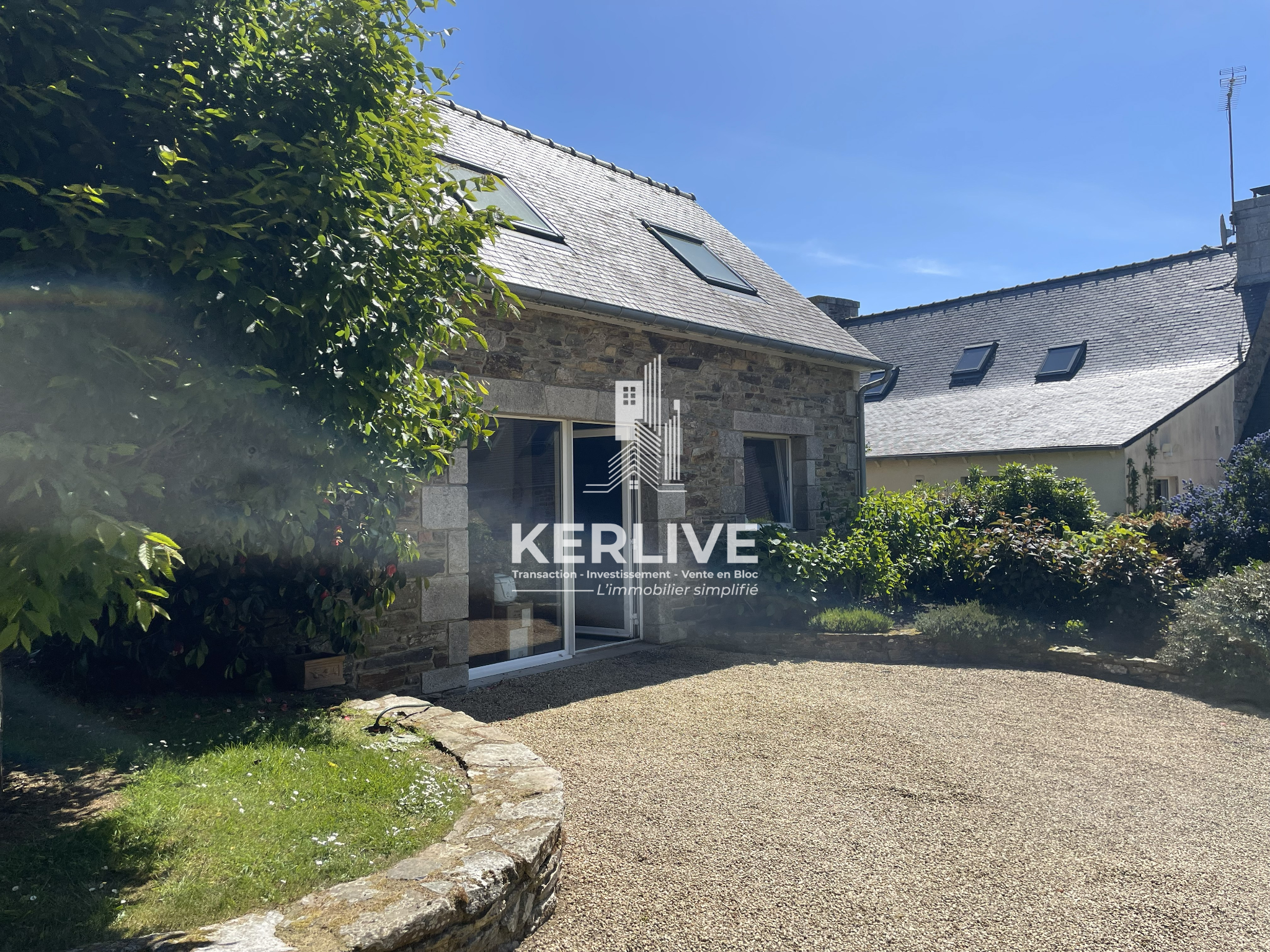 KERLIVE vous propose, dans un cadre paisible et verdoyant, à proximité des commerces et écoles à La Roche Derrien, dans les Côtes d’Armor, entre Paimpol et Perros Guirec, cette longère en pierres apparentes offrant plusieurs espaces.